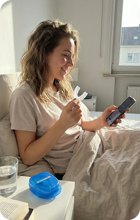 Vår snarkskena är utformad för att minska snarkning genom att hålla tungan i rätt position – så luftvägarna hålls öppna hela natten. En enkel lösning för bättre sömn, varje natt.
